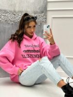 Ta stylowa bluza z kapturem łączy w sobie casualowy komfort z eleganckim akcentem. Wykonana z wysokiej jakości bawełny, zapewnia miękkość i wygodę noszenia przez cały dzień. Na przodzie znajduje się efektowny napis „Bonjour Madame Mademoiselle”, który nadaje jej wyjątkowego charakteru i nuty francuskiego stylu. Kaptur z regulacją sprawia, że bluza jest praktyczna, a ściągacze przy mankietach i u dołu dodają jej sportowego wyglądu. Dostępna w kilku kolorach, idealnie sprawdzi się zarówno na co dzień, jak i w luźniejszych stylizacjach. Połącz ją z jeansami lub spódnicą, aby stworzyć modny, casualowy outfit.