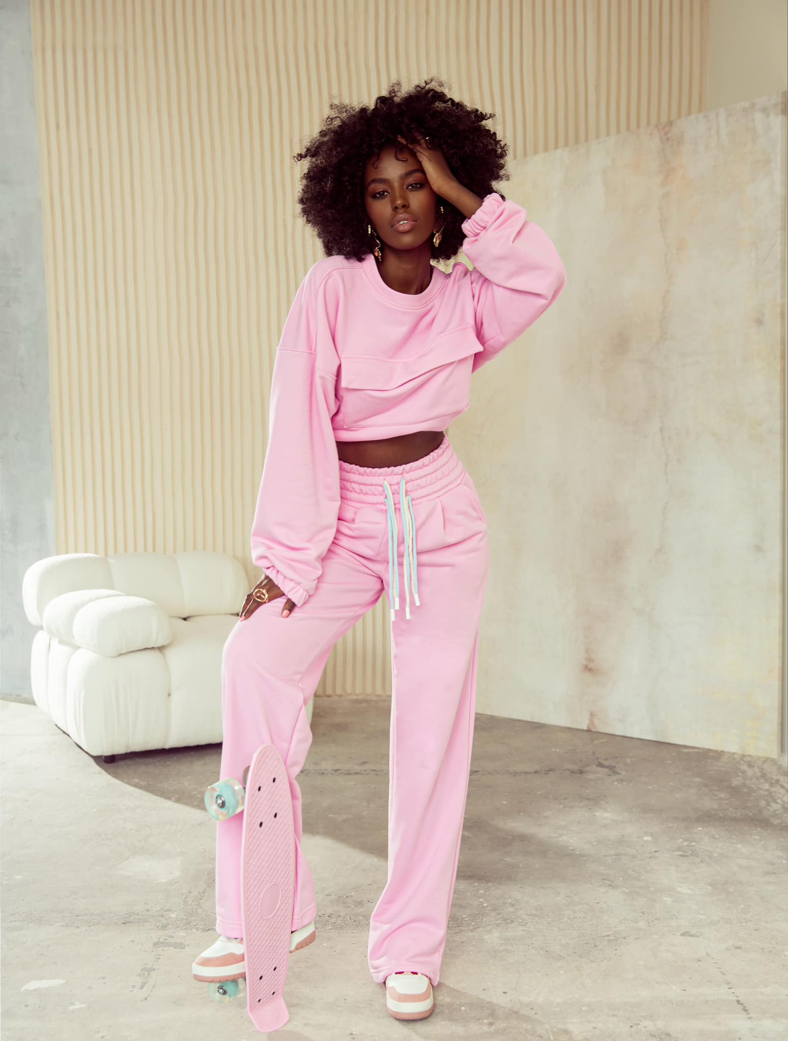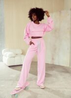 Komplet 2-częściowy w przepięknym różowym kolorze, wykonany jest z wysokiej jakości bawełny, uszyty z dbałością o każdy szczegół w Polsce. Składa się z wygodnej bluzy i spodni, które idealnie uzupełniają zestaw. Spodnie posiadają gumkę w pasie, dzięki czemu świetnie dopasują się do sylwetki. Bluza oversizowa z kieszonką z przodu.