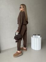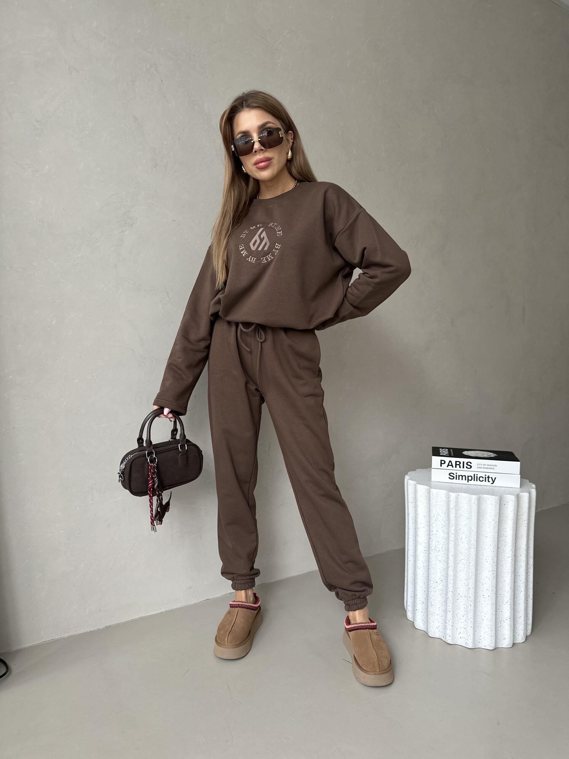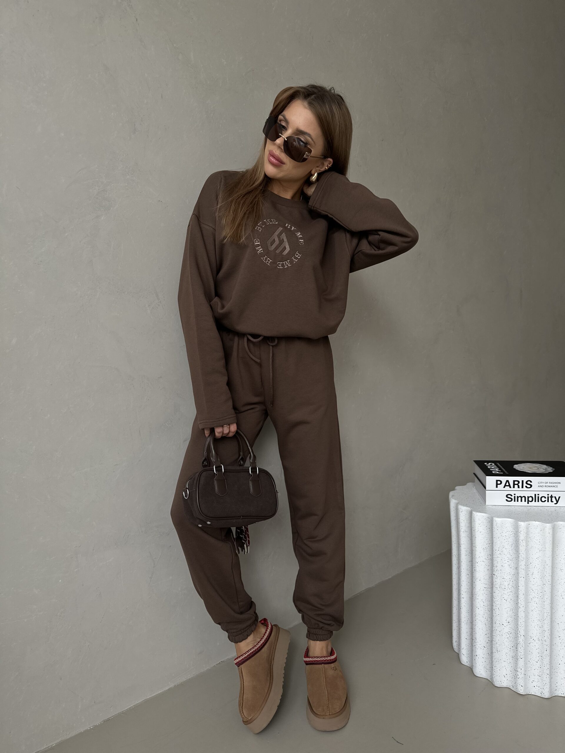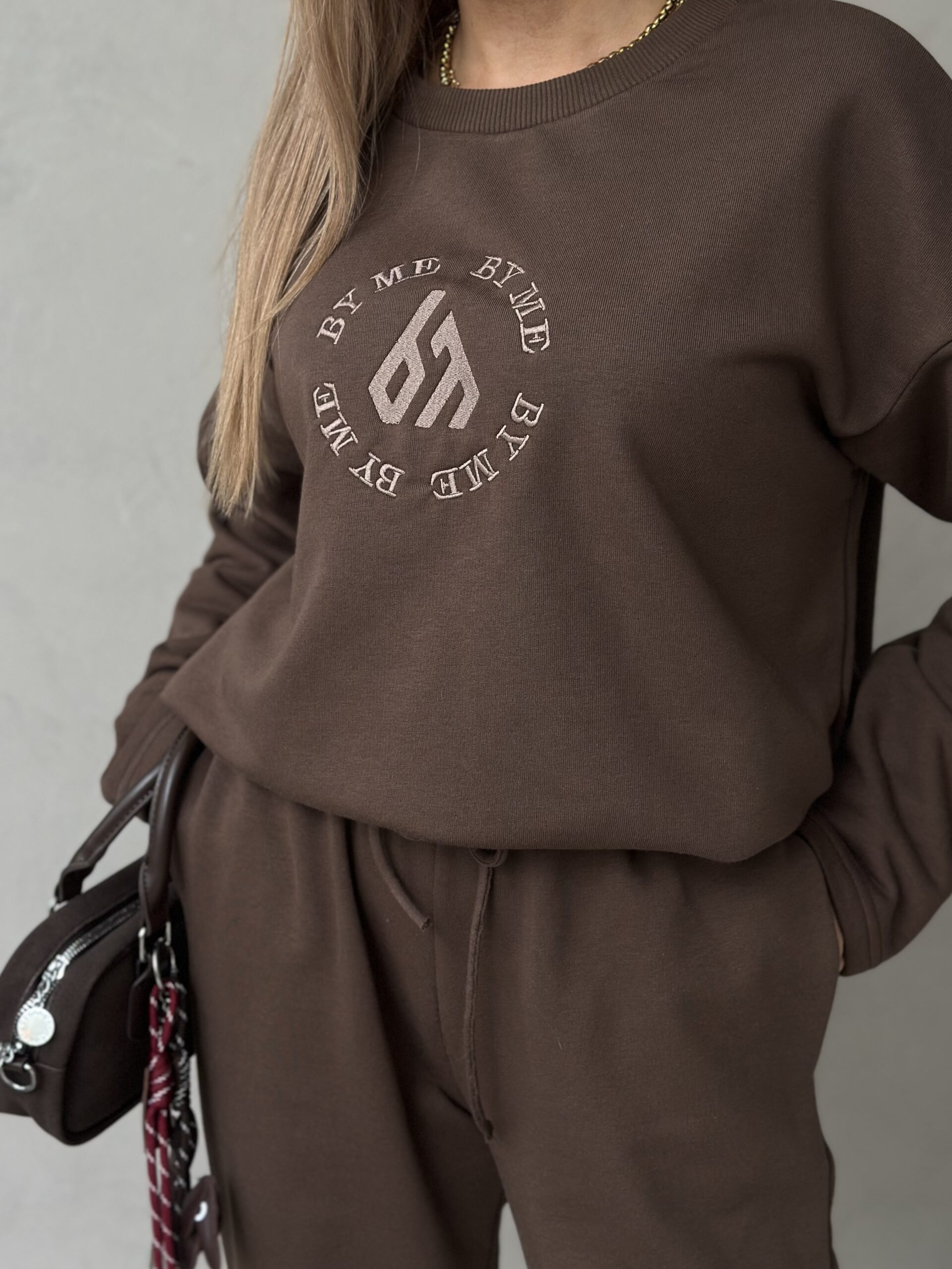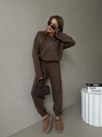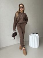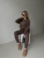 Komplet Louis składający się z bluzy o luźnym kroju, z długim rękawem z troczkiem regulującym długość oraz logowaniem na środku. Spodnie mają gumki na nogawkach i w pasie oraz dwie wbudowane kieszenie.