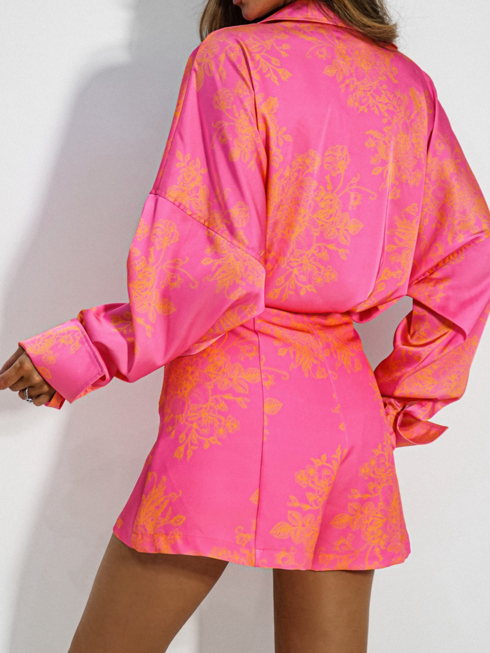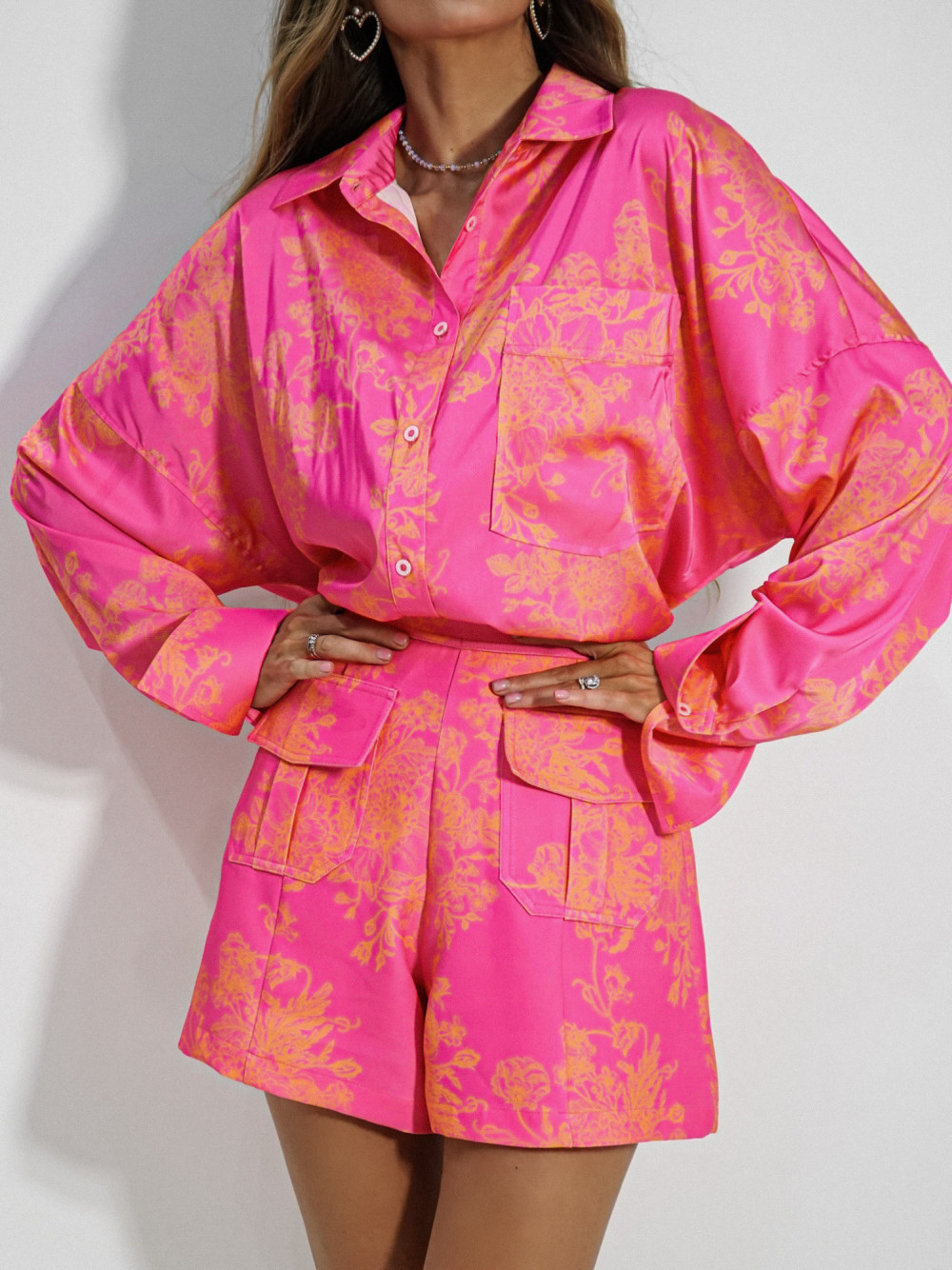 omplet PEDRO to must have każdej wiosenno/letniej garderoby! Oversizowa koszula zapinana na guziczki oraz krótkie szorty z wysokim stanem.