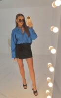 Ta koszula damska to prawdziwa perełka letniej garderoby, łącząca w sobie styl i komfort. Jej oversizowy krój zapewnia nie tylko swobodę ruchów, ale także dodaje stylizacji nuty luzu i nonszalancji. Szerokie rękawy zakończone mankietem nadają koszuli elegancji i klasy, podkreślając jednocześnie jej nowoczesny design. Zapięcie na guziki sprawia, że jest ona praktyczna i łatwa w noszeniu, pozwalając na szybkie i wygodne ubieranie oraz dostosowanie głębokości dekoltu do indywidualnych potrzeb. Najbardziej jednak wyróżniającym elementem tej koszuli jest elegancki kołnierz z dodatkowymi sznurkami, które umożliwiają stworzenie oryginalnego wiązania w okolicy dekoltu.