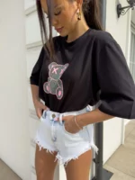 T-shirt GIRLS z odpinanym kwiatem i poduszkami na ramionach to kolejny hit Lila Lou! Mięsista bawełna polskiej produkcji, delikatny haft z logiem.