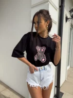 T-shirt BEAR z wysokiej jakości bawełny, charakteryzuje się przepiękną aplikacja misia z cekinami. Krój lekko w literkę “A” oraz dłuższe rękawy.